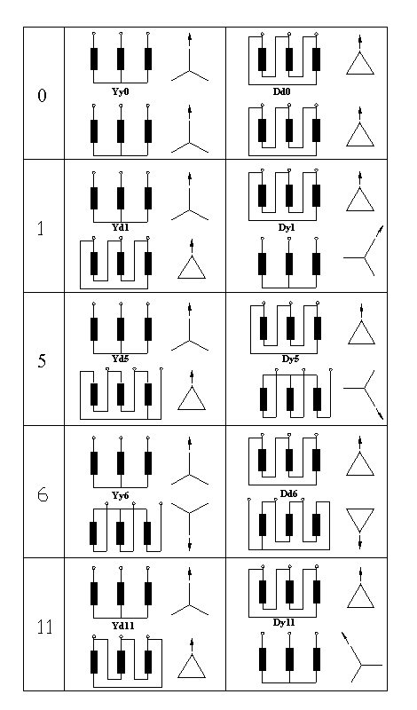 变压器二个绕组组合起来就形成了4种接线组别:“Yy”、“Dy”、“Yd”和“Dd”。我国只选用“Yy”和“Yd”。由于Y衔接时还有带中性线和不带中性线两种不带中性线则不增加任何符号表明带中性线则在字母Y后边加字母n表明。n表明中性点有引出线。Yn0接线组别UAB与uab相重合时、分针都指在12上。“12”在新的接线组别中就以“0”表明。